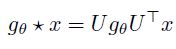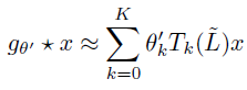 graph의 spectral convolution siganl x와 filter g=diag(theta)를 통해 정의했다.