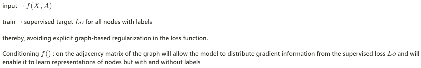 따라서, 논문에서는 neural network model를 graph structure에 직접적으로 사용하고 label를 가진 node를 학습시킴으로써 graph-based regularization in loss function 문제점을 해결했다.