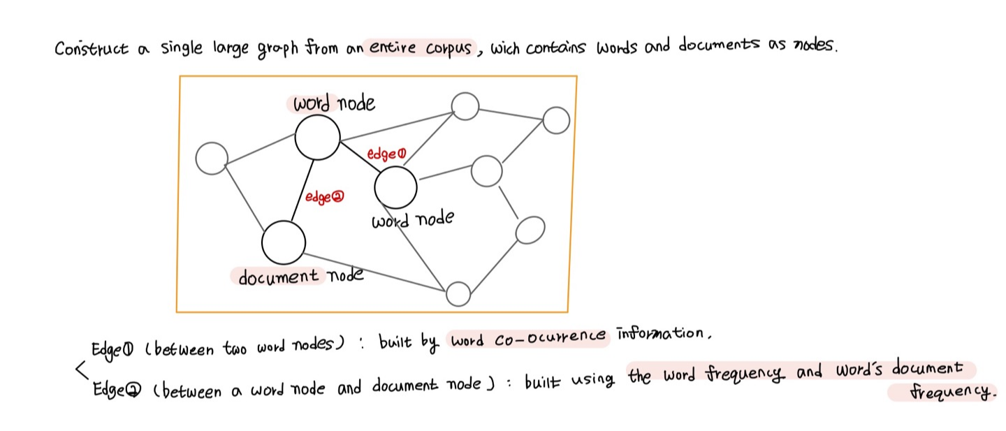 word node와 document node를 포함한 전체적인 corpus로부터 하나의 큰 graph를 구조화시켰다.
