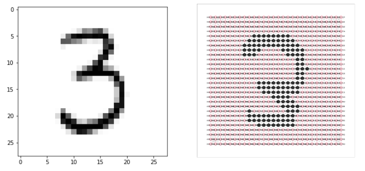 숫자 3의 실제 이미지와 graph로 만든 이미지를 확인해 보면 다음과 같다.