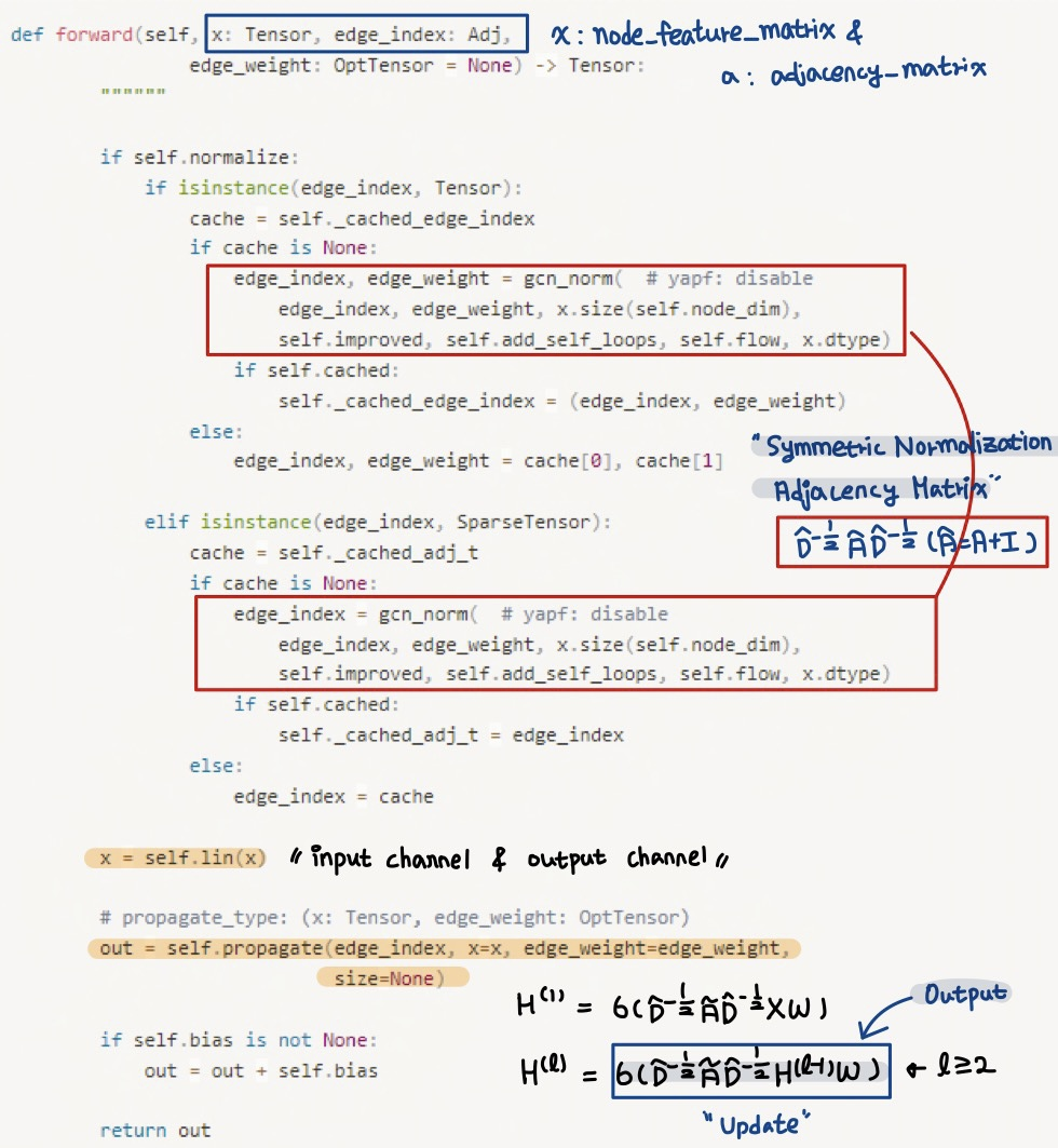 위의 설명을 토대로 Graph Convolution Neural Network의 class는 다음과 같다.