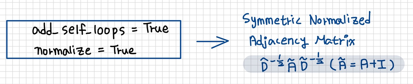 ## input channels, output channels, (add_self_loop = True, normalize = True) -> symmetric normalzied adjacency matrix.