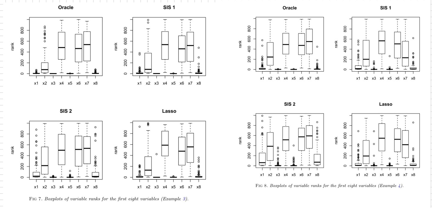 하지만, 문제점이 존재한다. 실제로 우리는 important variable set, $S^*$, 에 대해 알지 못한다. 따라서, $S^*$을 추정해야한다.($\hat{S}$ -> SIS-1, SIS-2, LASSO)