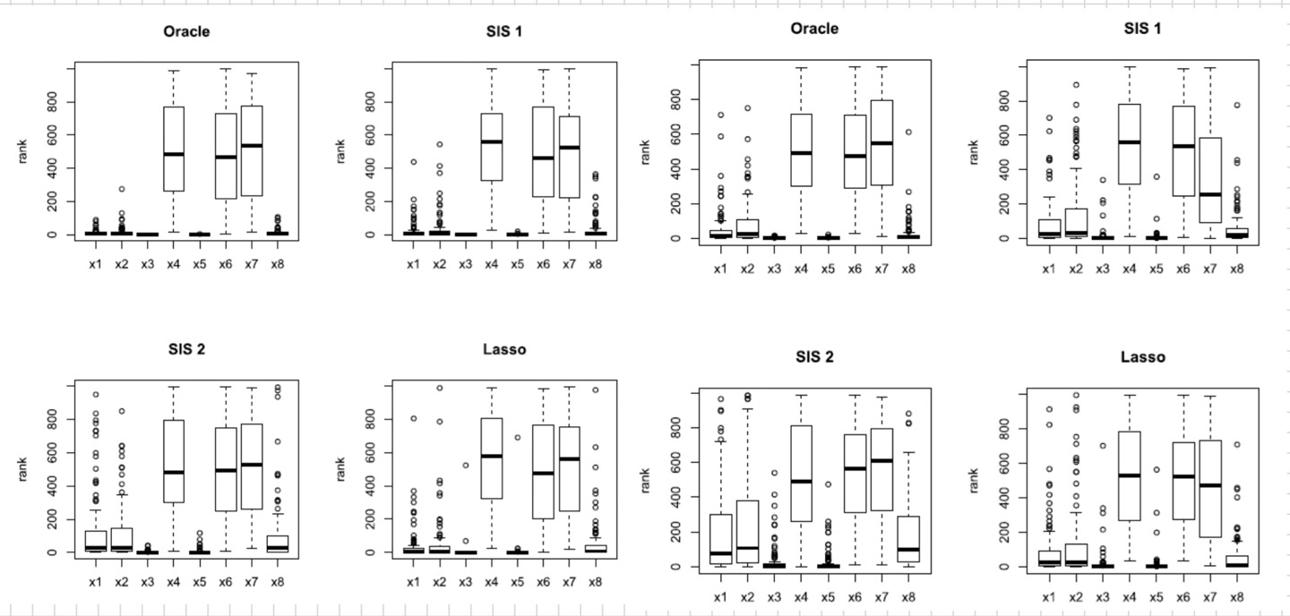 셋째, singal이 너무 약해서 중요하지 않는 변수를 구별해 내기 어려운 경우다. 이와 같은 경우, variable screening을 포기하는게 현실적으로 낫다.