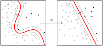 - $\phi(\cdot) : $ feature mapping function($R^d \to R^p \, (d < p)$)