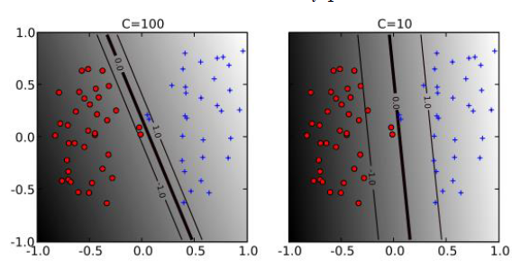 - Hyperparameter인 C값은 커질수록 이상치의 존재 가능성을 더 낮게 본다. 즉, 더 복잡한 hyper-plane이 형성된다.