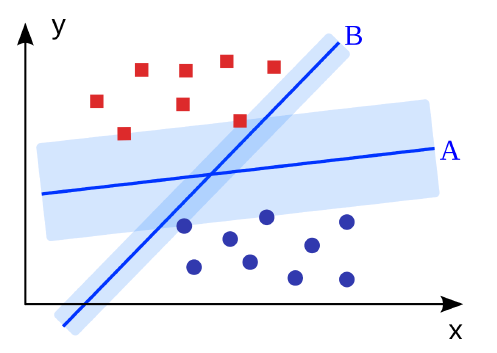 SVM에서는 hyper-plane $A$와 $B$ 중 margin이 더 큰 $A$를 더 선호한다. 이에 대한 이유 및 자세한 알고리즘을 설명해 보고자 한다.