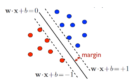 따라서, SVM의 목적은 $\text{argmax}_x{\dfrac{2}{||w||_2}} = \text{argmin}_x{\dfrac{||w||^2_2}{2}}$을 구하는 것이다.