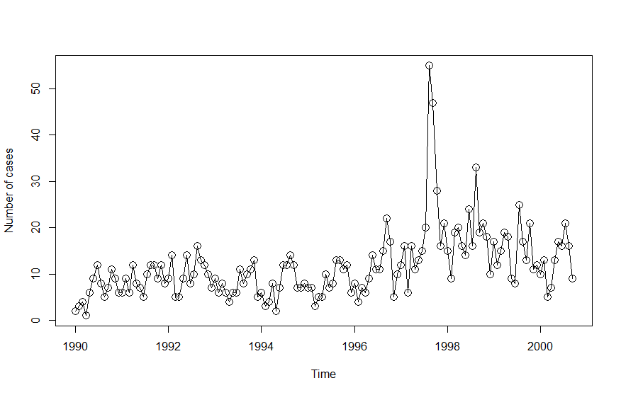 주 내용인 본 section 3에서는 count time series를 일반화 선형 모형(GLM)으로 적합하는 방법에 대해 설명하고자 합니다.