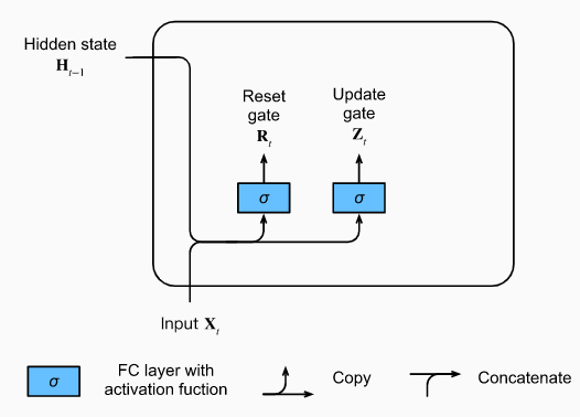 GRU의 전체적인 구조에 대해서 [Section 1: GRU]에서 자세하게 살펴보겠습니다.