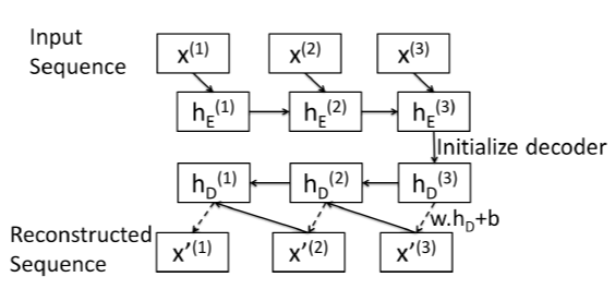 - output: 각 시점 $i$에 대한 재건축(reconstruct)된 입력값 $\hat{x}^{(i)}$와 hidden state(은닉 상태) $h^{(i)}_E \in \mathbb{R}^c$