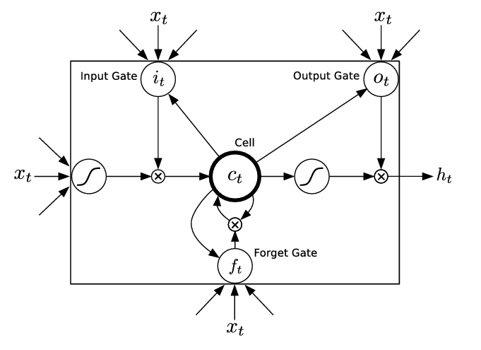 ConvLSTM은 LSTM의 변형 형태인 Fully connected LSTM(FC-LSTM)에 convolution structure를 추가함으로써 확장하였습니다. 본 [Section 1]에서는 FC-LSTM의 구조에 대해 간략하게 설명하고자 합니다.