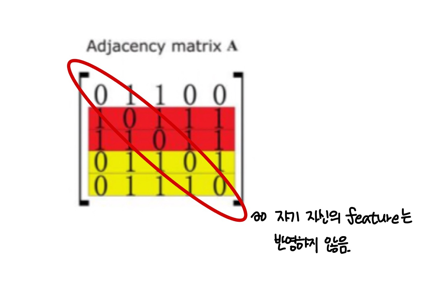 - 노드의 feature를 만드는 데에 있어 자신의 정보를 포함하지 않는 것은 직관적으로 생각해도 이상하다.