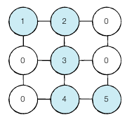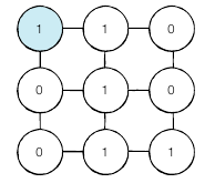 구멍이 뚫려 있는 부분은 9, 칸막이가 존재하는 부분은 1로 표시됩니다. 구멍이 뚫려 있는 부분끼리 상, 하, 좌, 우로 붙어 있는 경우 서로 연결되어 있는 것으로 간주합니다. 이때 얼음 틀의 모양이 주어졌을 때 생성되는 총 아이스크림의 개수를 구하는 프로그램을 작성하시오. 다음의 $4 \times 5$ 얼음 틀 예시에서는 아이스크림이 총 $3$개 생성됩니다.
