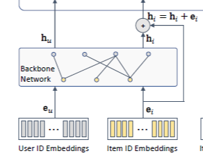 - backpropgation of loss over $(\tilde{h}_u, \tilde{h}_i)$